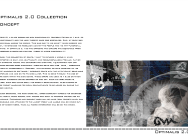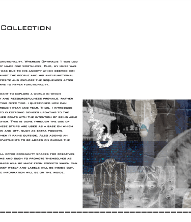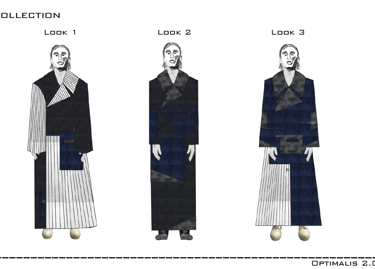 Optimalis 2.0 revisits the world of optimalis but know my character who was once focused on unfunctionality is now fixated on hyper-functionality. I explore themes of upgradability within fashion similarly to devices updating and improving with the newest sofware.